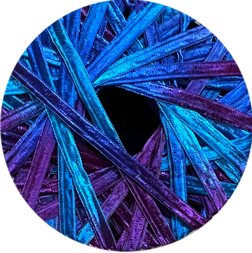Imported from Italy, Kumihimo Jubilee Ribbon (KJR) is a gorgeous color saturated 3/8" wide Nylon braiding ribbon. The colors are absolutely beautiful and some even have a special iridescent appearance. KJR braids beautifully on both the Foam Disk and the Marudai. An 8 strand round braid yields a finished braid that fits well in most 6mm end caps. With the help of a wide eye needle, it is easy to thread most Japanese 6/0 seed beads and Magatamas onto the KJR Ribbon. I came across a few beads where I have steadied the wide eye needle with my jewelry pliers so I could get a better handle on threading the beads. There are so many possibilities with this beautiful braiding ribbon. It comes in 10 yards skeins. I have braided with all elements in KJR and I have mixed the KJR with Petite Satin. The possibilities are endless. Experiment and have fun.